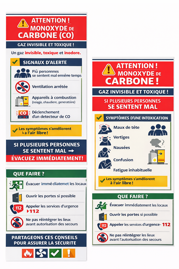 Si plusieurs personnes se sentent mal en même temps → évacuer immédiatement le bâtiment.